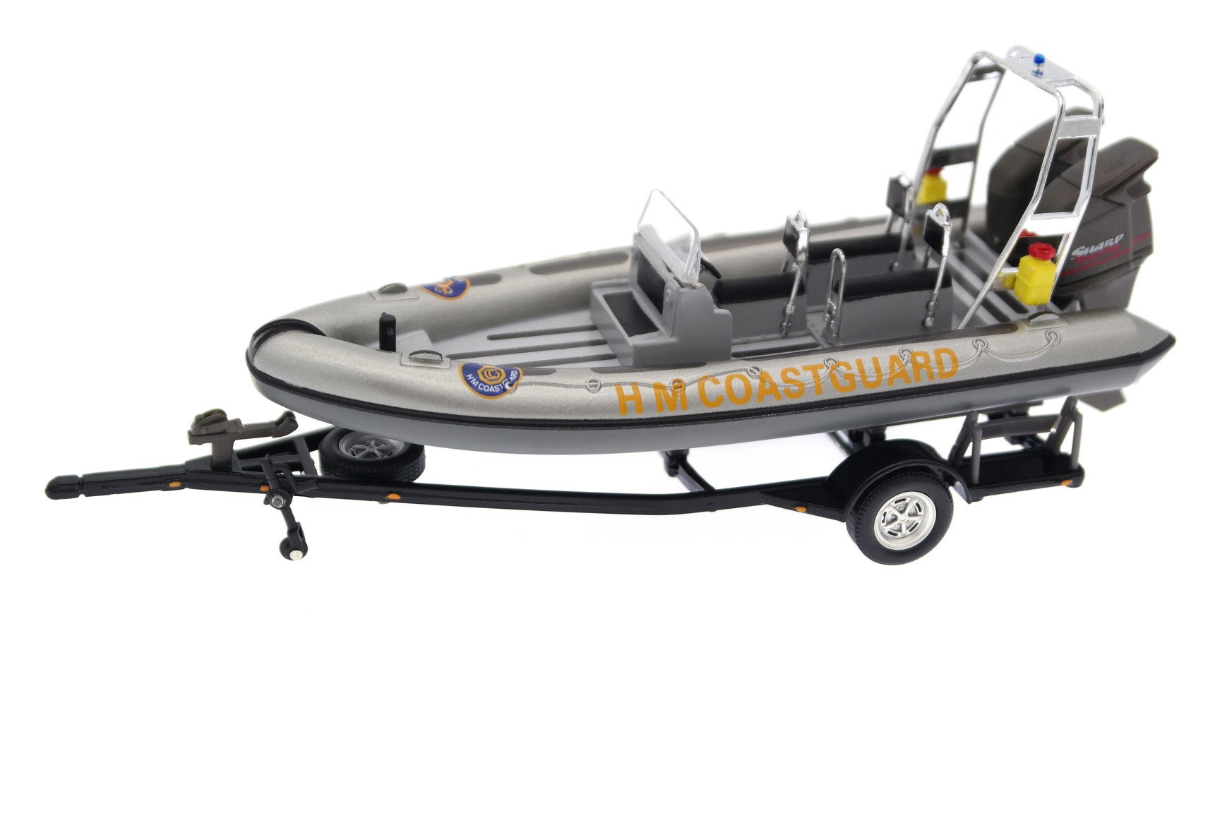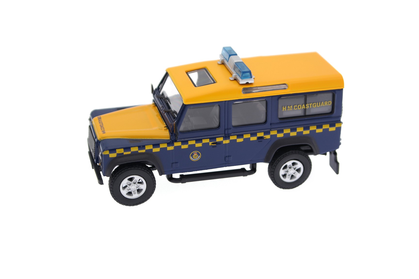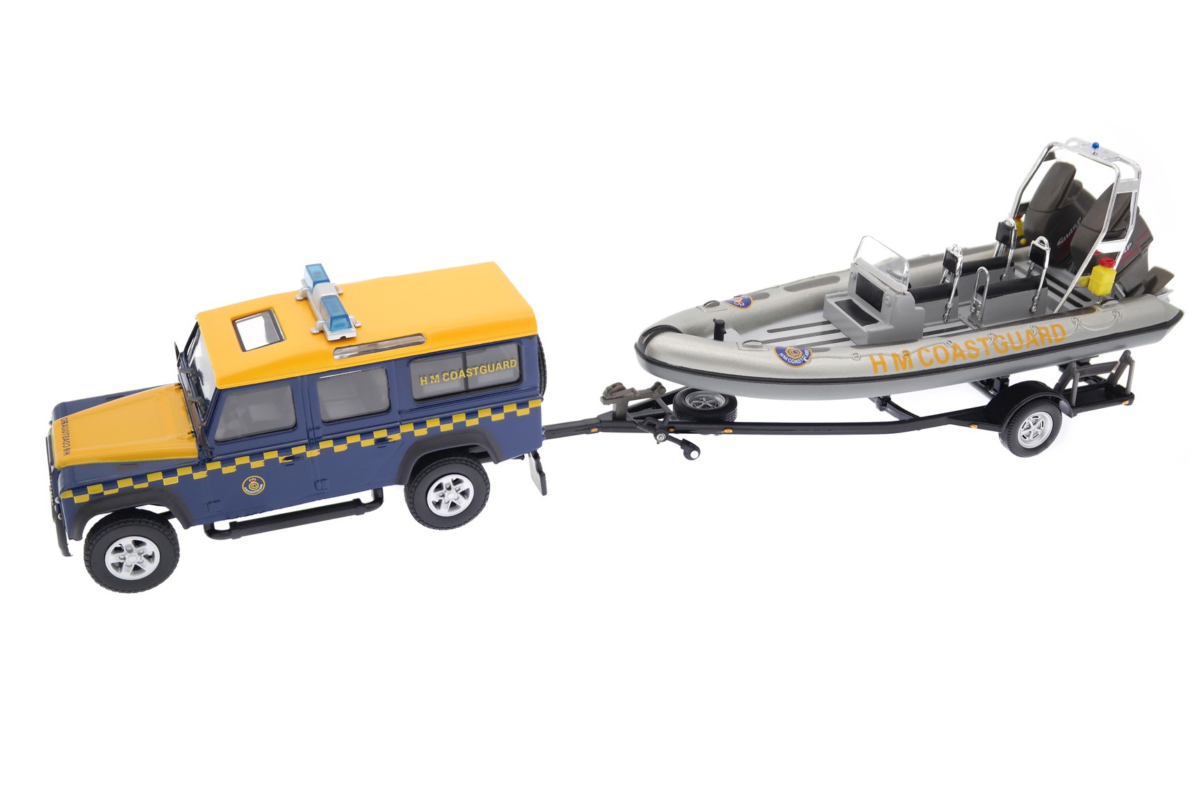 1/43 Cararama 480ND009 Land Rover Defender 110 Station Wagon HM Coastguard with Avon Searider RIB Boat 1998 - Royal Blue/Luminous Orange