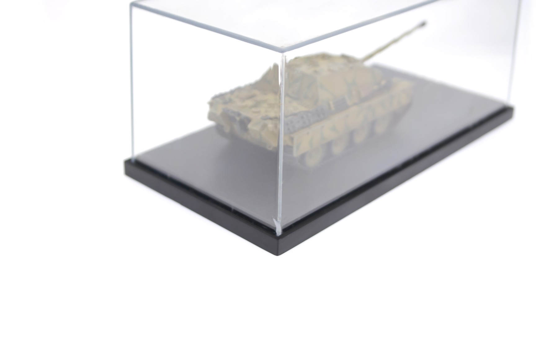 Acrylic display case with storage marks, without cardboard packaging, microcrack in one of the corners of the acrylic case