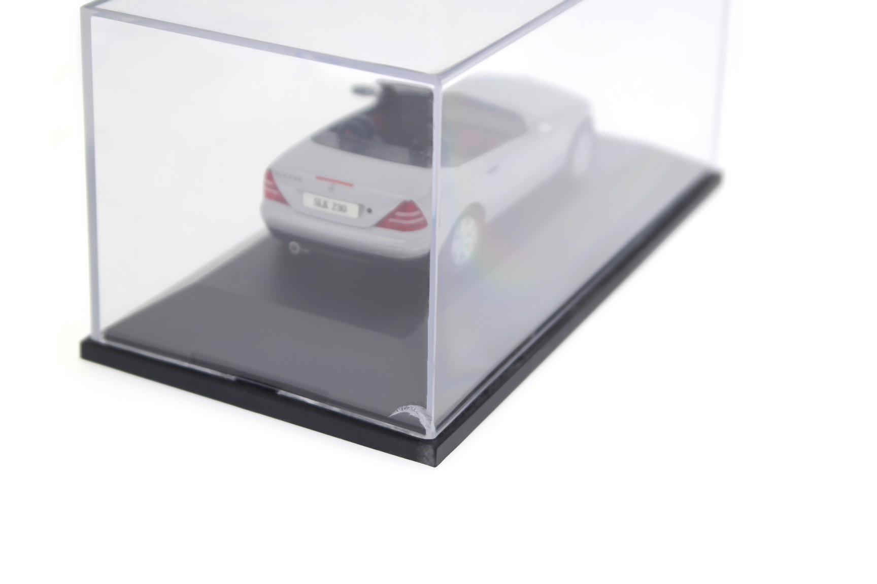 Packaging with traces of storage, crack in one of the corners of the acrylic case