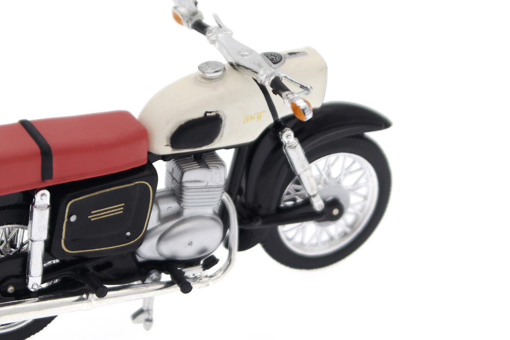Model from the collection, without packaging, metal nameplate included, defect in black paint application on the gas tank on the right side, the inscription "Trophy" is partially erased