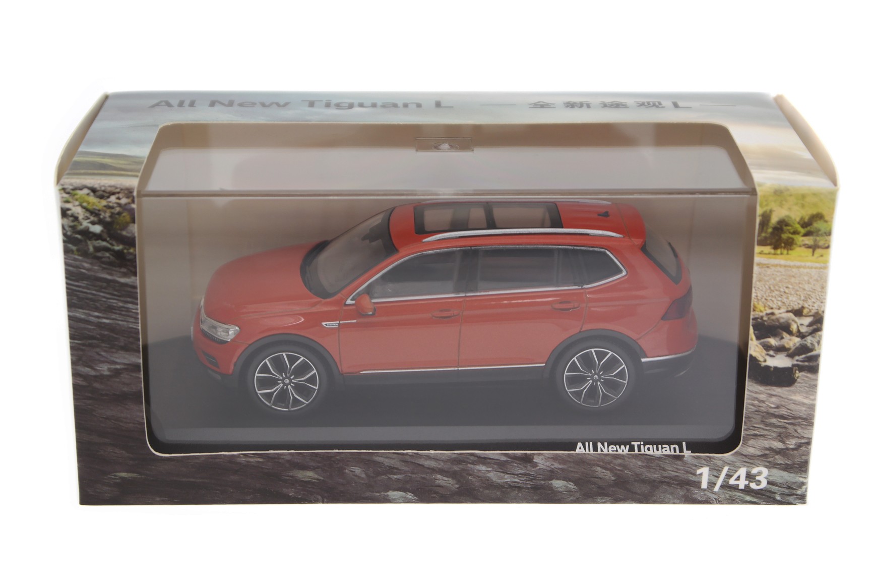 1/43 China Promo Models DC1412 Volkswagen Tiguan L II 380 TSI 4MOTION 2017 - Habanero Orange Metallic, dealer edition