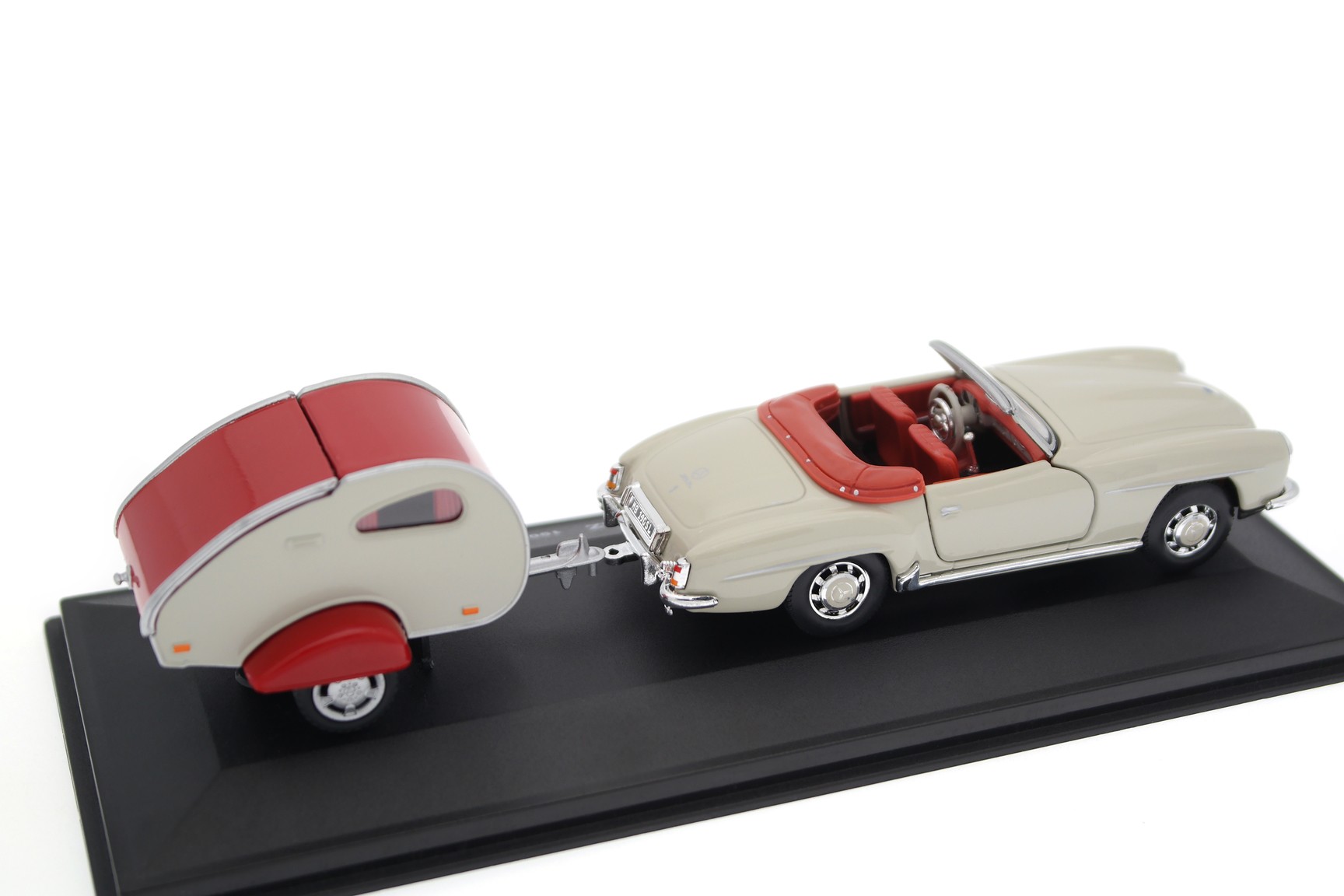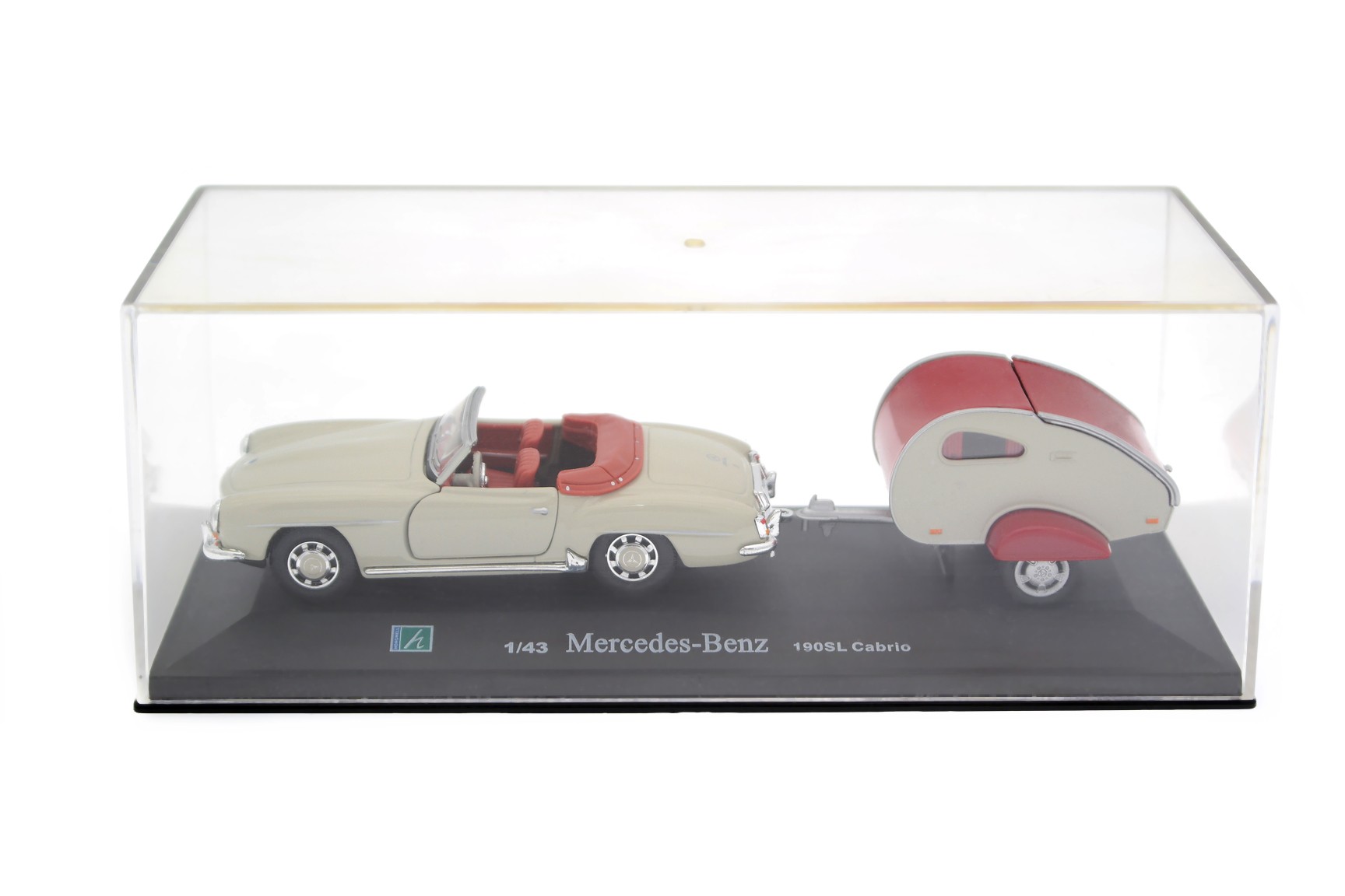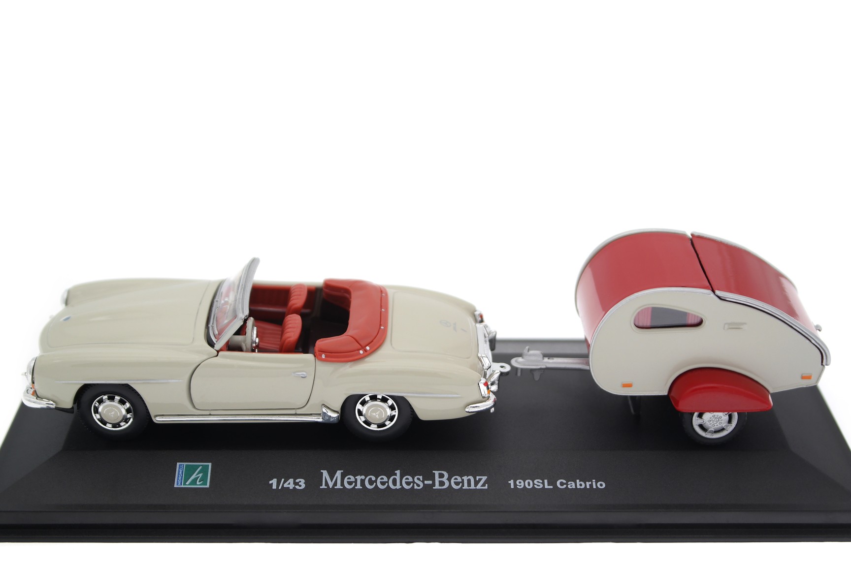 1/43 Cararama 02061 Mercedes-Benz 190 SL W121 with Moldi 2 Camper Trailer 1955 - White Grey