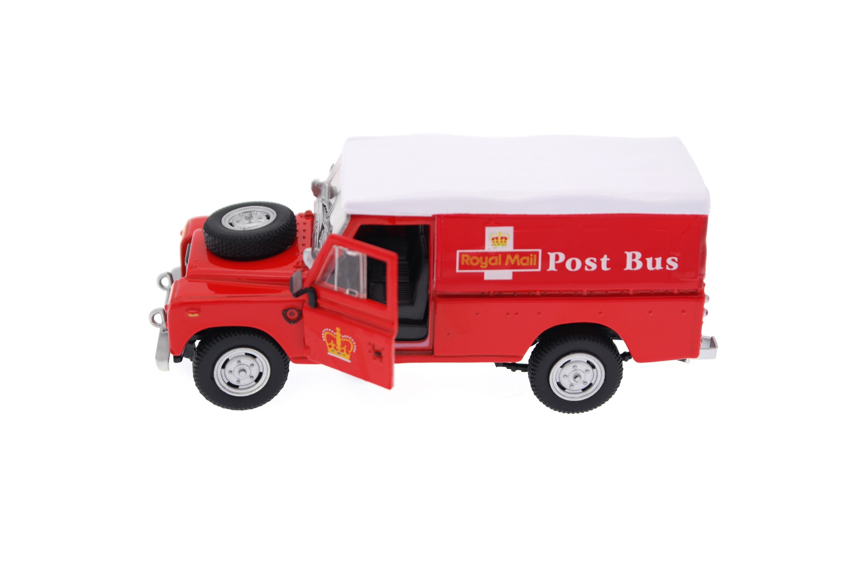 1/43 Cararama 251XND09 Land Rover Series III 109 Soft Top Royal Mail Post Bus 1974 - Post Office Red