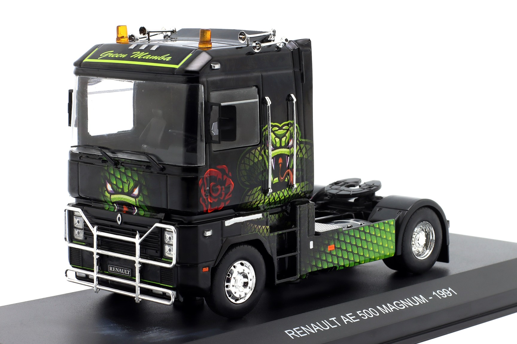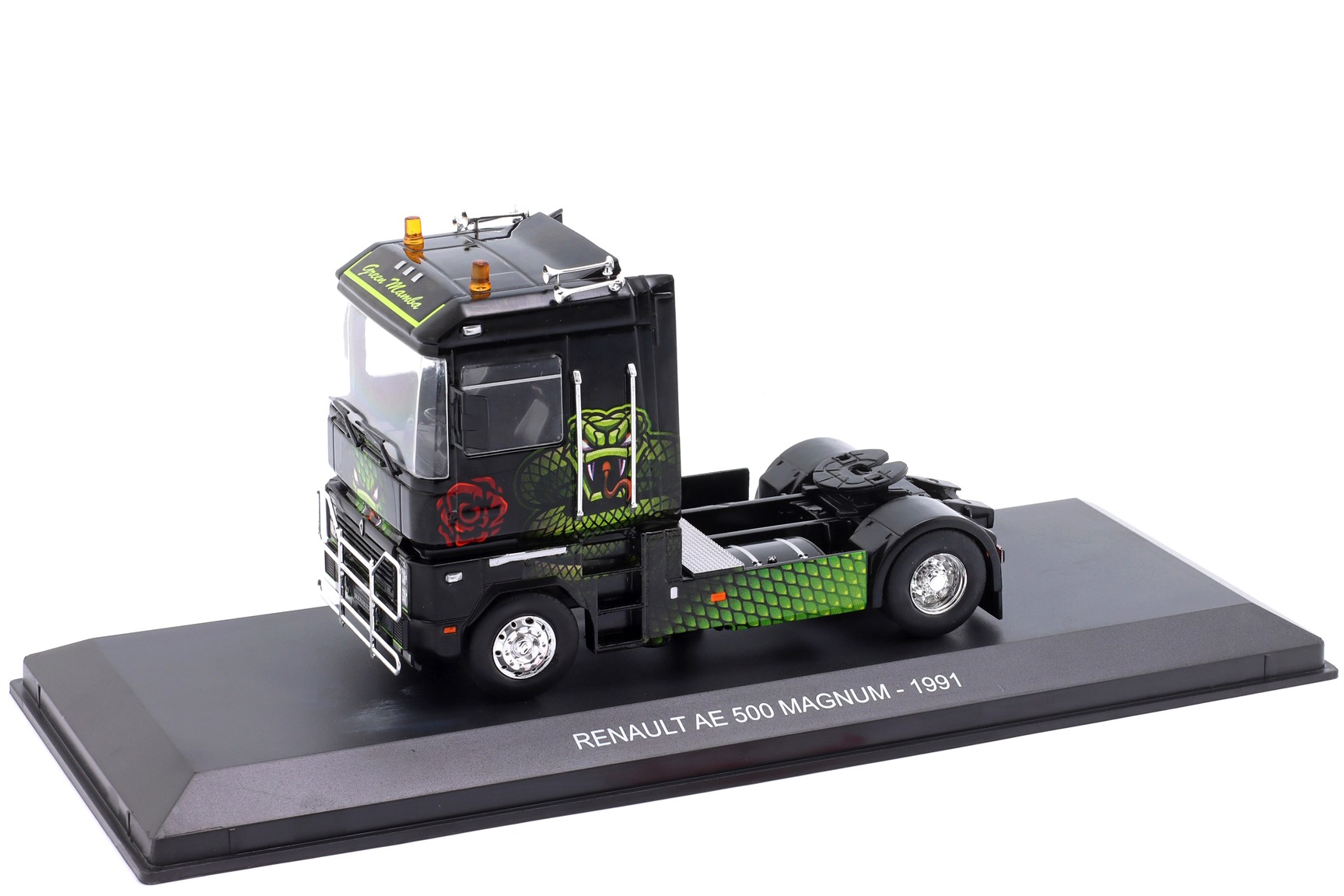 1/43 Hachette G1470006 Renault AE 500 Magnum Green Mamba 1991 - Solid Deep Black with Green Livery, Truck Tuning Collection #6