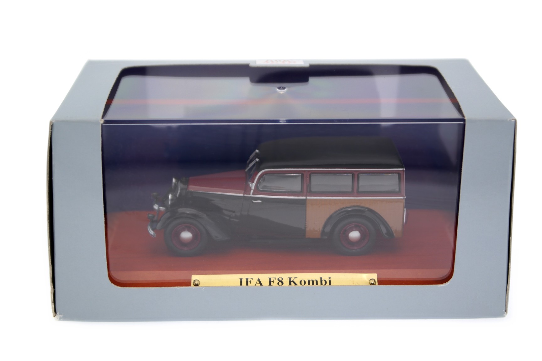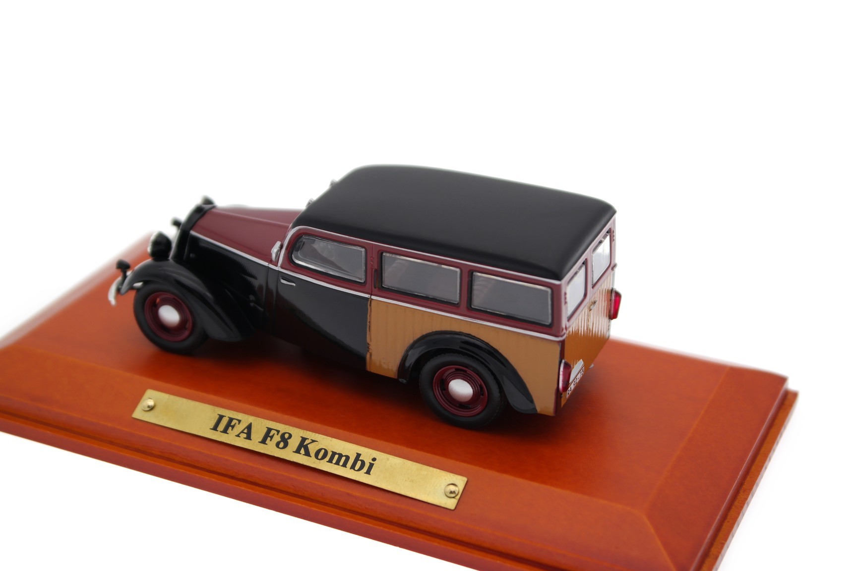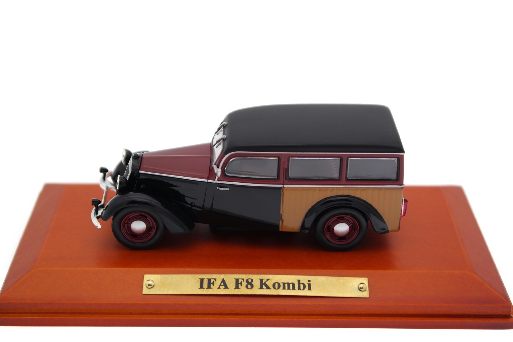 1/43 Atlas 7130134 DKW IFA F8 Kombi 1950 - Velvet Black/Wine Red/Wood, DDR-Auto Kollektion #34