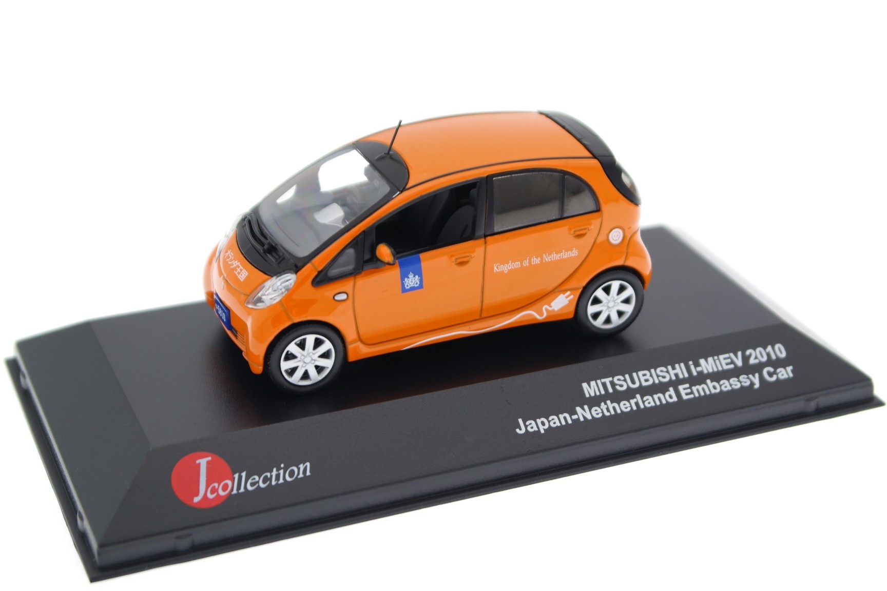 1/43 J-Collection JC264 Mitsubishi i-MiEV RHD Embassy Car Kingdom of the Netherlands in Japan 2010 - Bright Orange